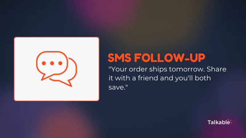 - Send within 24-48 hours of purchase, ideally with a shipping update or order status tied in. Something like: “Your order ships tomorrow. Share it with a friend and you’ll both save.”
