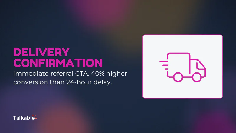 - Trigger the referral ask at the moment of confirmed delivery, not hours later. Speed matters here because the emotional peak is brief.