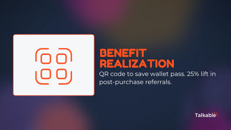 This is one of the most underutilized referral channels in ecommerce. A wallet pass (Apple Wallet or Google Wallet) puts your referral offer directly on your customer’s phone, where it stays indefinitely and can be updated dynamically. Unlike an email that gets buried or a text that gets deleted, a wallet pass has persistent visibility.