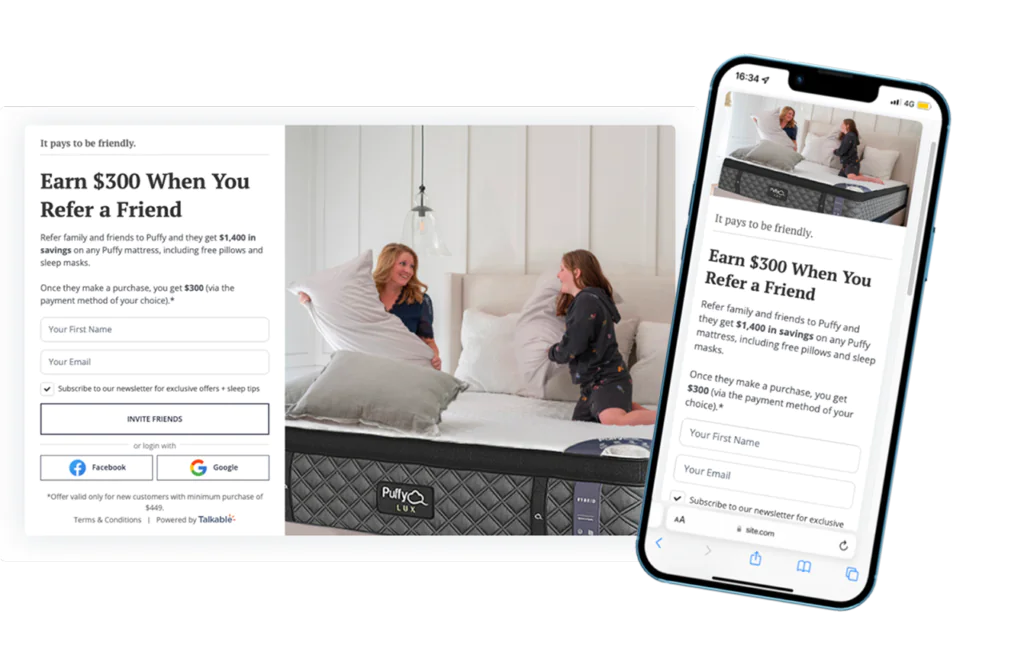 Puffy uses Talkable’s referral marketing platform to grow their business. Learn how Talkable can help you scale further and faster.