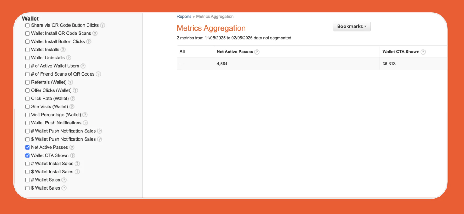 The Problem: Marketers were flying blind at key stages of the Wallet adoption journey. While installs and redemptions were trackable, there was no way to measure how many users actually saw the Wallet CTA—or how many passes remained actively installed over time. This gap made it tough to diagnose drop-offs or optimize for growth.